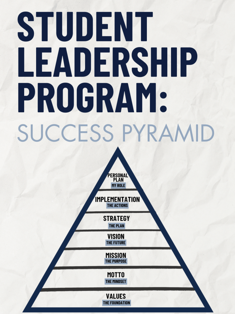 The Student Leadership Program: Success Pyramid is a practical framework designed to help schools develop intentional, organized, and student-centered leadership programs: from values and mindset to implementation and personal leadership growth.